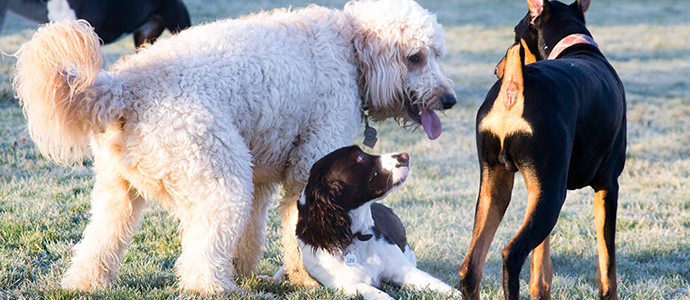 Dogs and kids are a lot alike in many ways, and just like kids are prone to scrapes and bruises or picking up "The Scuz" from daycare or school, dogs will eventually come down with something inconvenient or unpleasant. We do our best to keep everyone clean, healthy, and safe, but once in a while someone will come in with a cold their human wasn't aware of, find a sharp spot on a fence, or get in an argument with a playmate. Here's a few other health-related things to be aware of if you bring your dog to daycare or group classes: